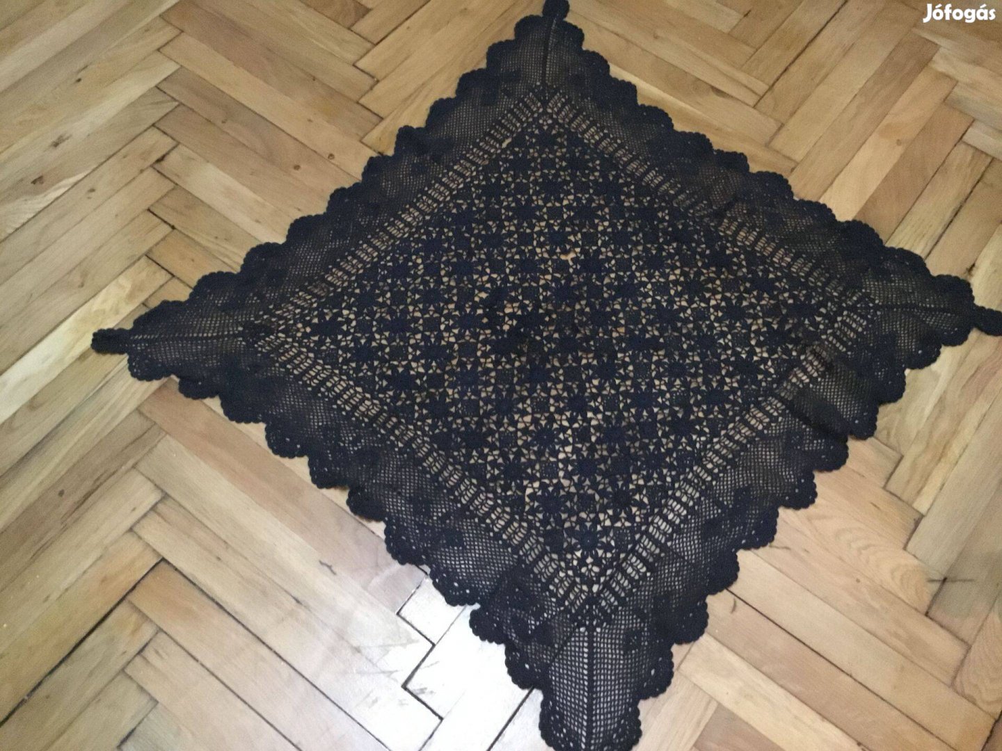Eladó egy 86 x 86 cm- es fekete színű, rock barokk stílusú , kézi horgolású, csipketerítő egy kisebb kijavított hibával.