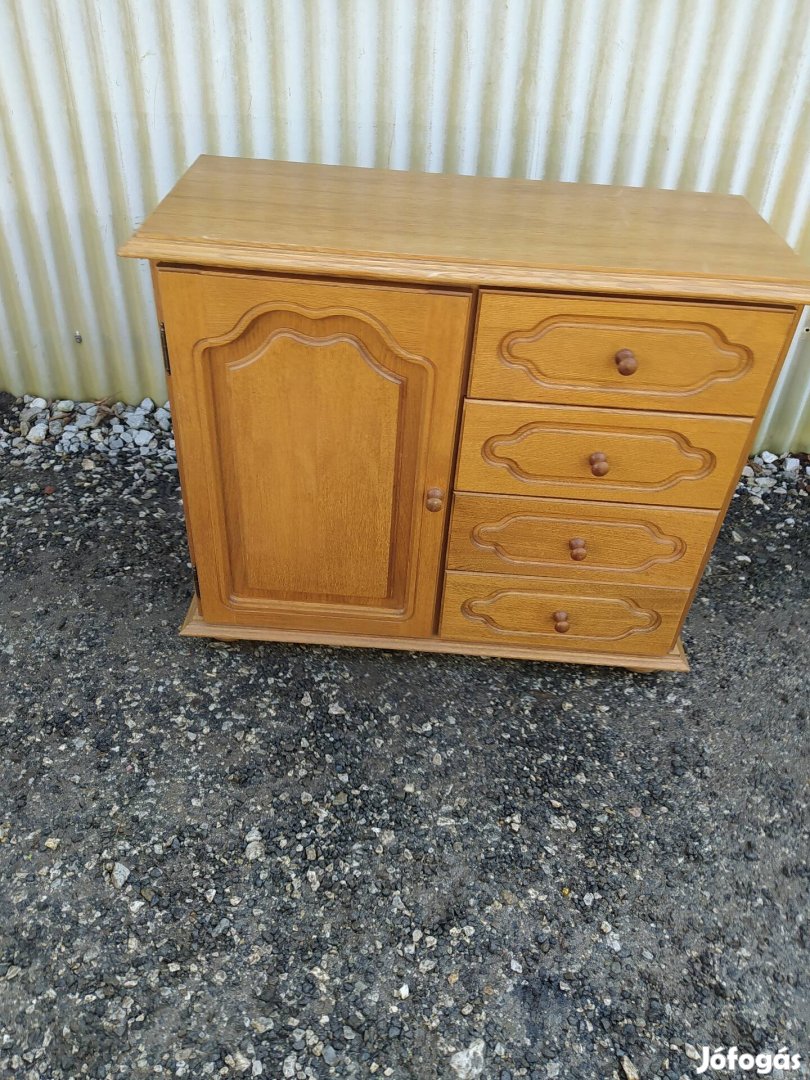 Eladó szép megkímélt állapotban díszes tölgyfa komodom fiókos polcos elosztasa ,amely 80 cm magas ,94 cm szélesség ,40 cm mély ,hibátlan szerkezeti és esztétikai állapotban képen minden jól látható Érd telefonon 30/5715106 ,30/3176207