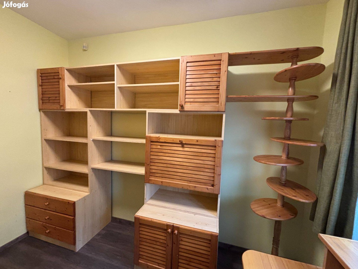 Eladó egyedi készítésű szekrénygarnitúra csatlakozó virágtartóval. Az ajtók, fiókelőlapok fenyőből vannak, egyébként bútorlap. A szekrénysor elemekre bontható (nem lapokra!). Méretek: 251 cm széles, 230 cm mages és 40 cm, illetve az alján 60 cm mély. A virágtartó kinyúlása 80 cm. Szállításban nem tudok segíteni.