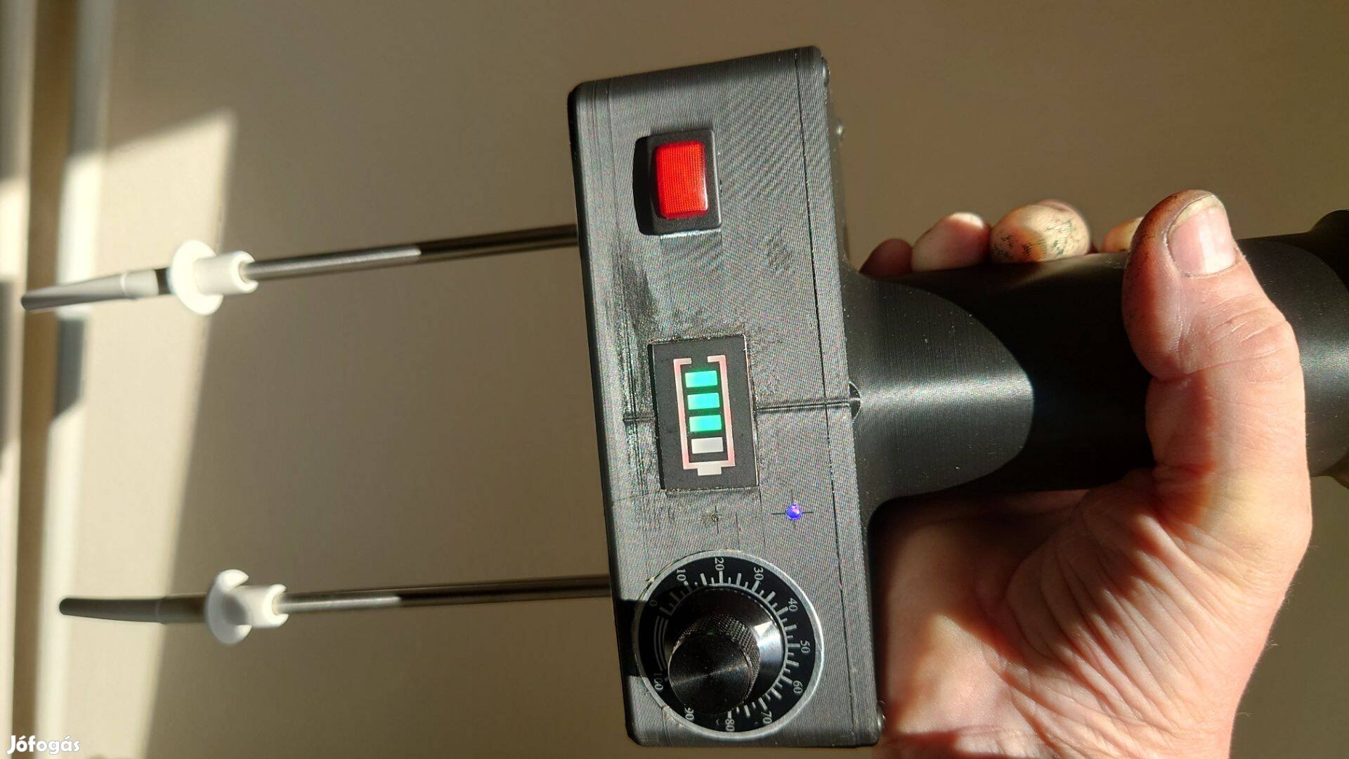 Eladó megbízható, álítható áramersőséggel ellátott, elektromos, akkumulátoros kábító, sokkoló legfőképen sertéseknek, de használható más álatok kábítására is. A kábító súlya 650- 700 g, egy töltéssel 20 állatot képes elkábítani, akkumulátor állapotjelzővel rendelkezik. A piros gombbal történő bekapcsolás és a forgó potenciométerrel történő bekapcsolás után egy másik dióda is kigyullad, jelezve a működés megkezdését.Az akumlátor samsung 3800mA Li-On, biztonsági elektronikával ellátva . Ennek a kábítónak az egyértelmű előnye a biztonság, mivel nincs szükség hosszabbítóra, és a kis és nagy, akár 500 -600kg-os álatra, áramerőssége is zökkenőmentesen állítható, Természetesen biztosítva az akumlator , ugyanúgy mind a kimenet is. A pukal pótlására szolgál, ez az idő legújabb vívmánya. ár250