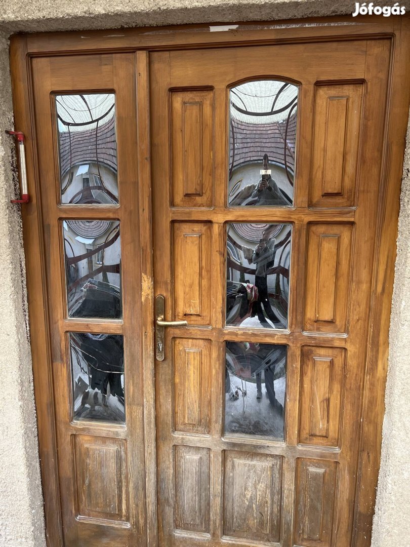 Eladó bejárati ajtó. Sajnos a kutya fel ugrált rá így az látható rajta, illetve az egyik üveg repedt benne. Amúgy tökéletesen működik. Egy kis festés, csiszolás után szép állapotú lehet. Magasság 205 szélesség 128 cm. Helyileg Bánhorváti