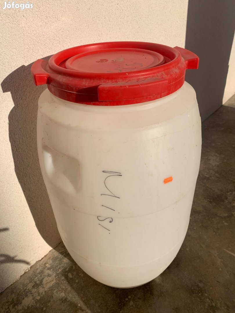 Eladó 60 l-es, menetes, nagyszájú hordók fedéllel. 22 db. Lehetőleg egyben eladó.2500 Ft/ db