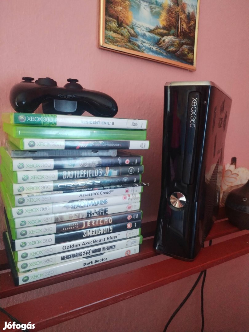 Xbox 360 slim hibátlan állapotú tökéletesen működik . van hozzá 13db játék + a kontroller és a tartozékai.