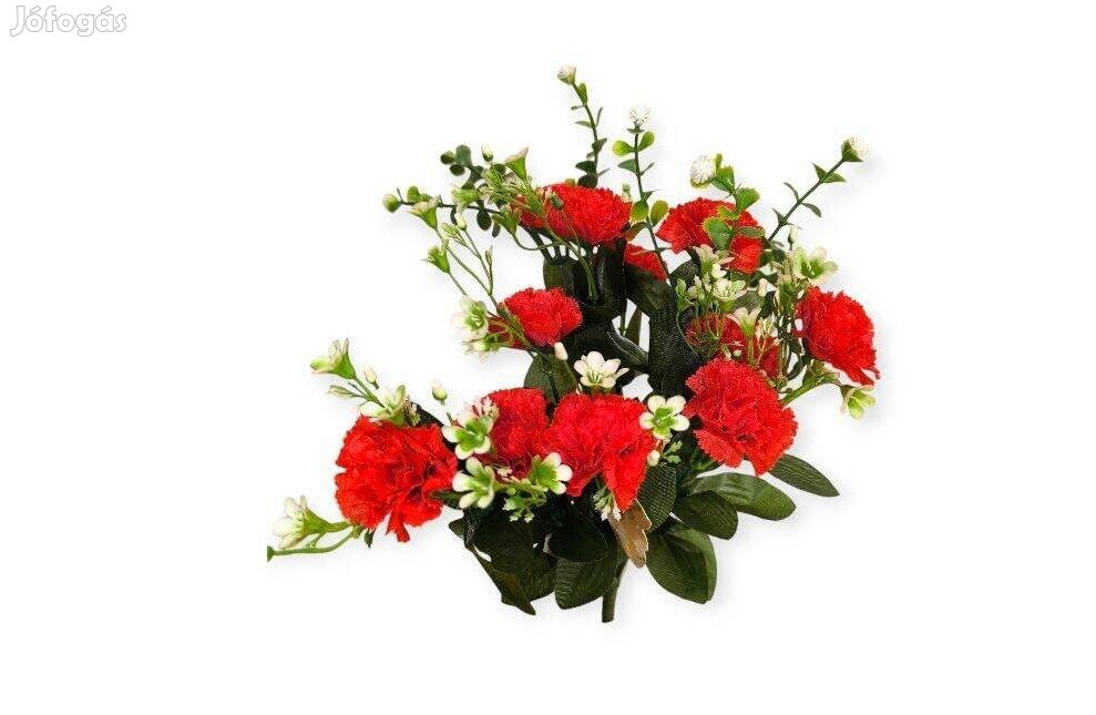 Élethű piros szegfű művirágcsokor fehér kiegészítéssel 35 cm