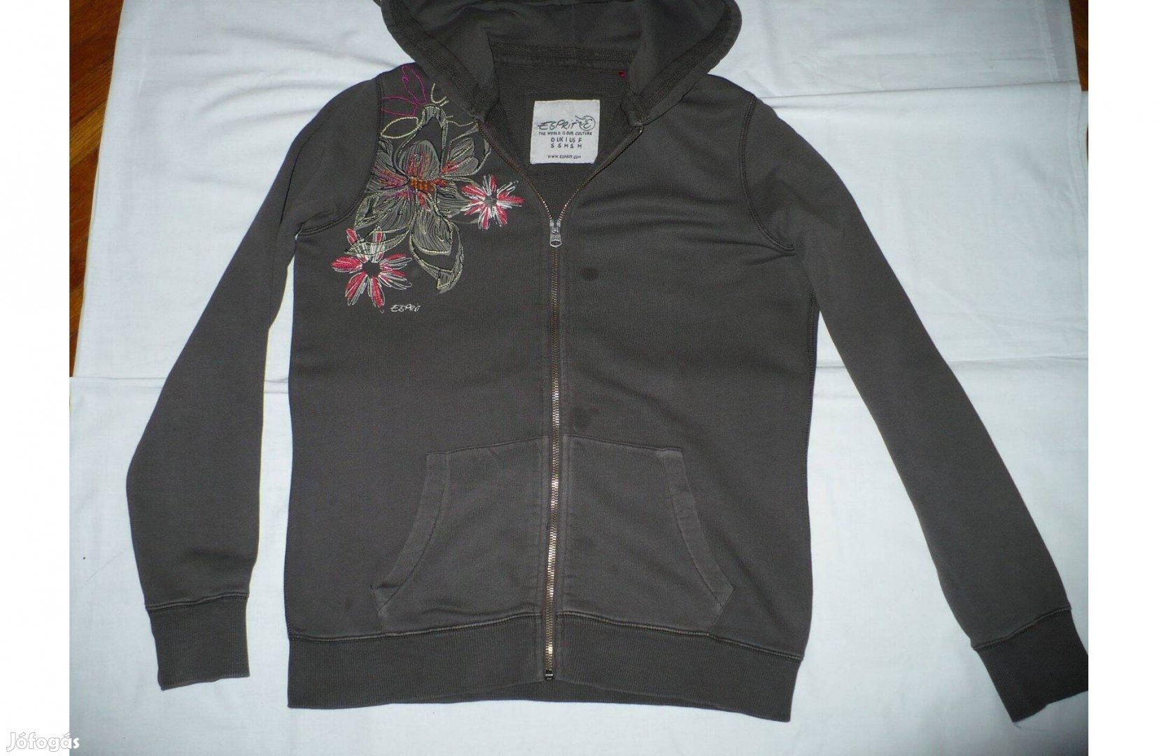 Esprit barna női kapucnis pamut felső, S-es méretben, pár folttal, de egyébként jó állapotú