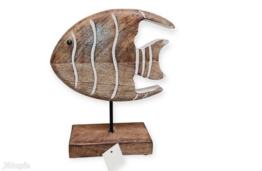 Ez a stílusos, természetes faanyagból készült dekoratív hal egyedi kiegészítője lehet otthonodnak. A díszhal letisztult formavilága, kézzel faragott részletei és fehér festett csíkjai rusztikus, mégis modern hatást keltenek.