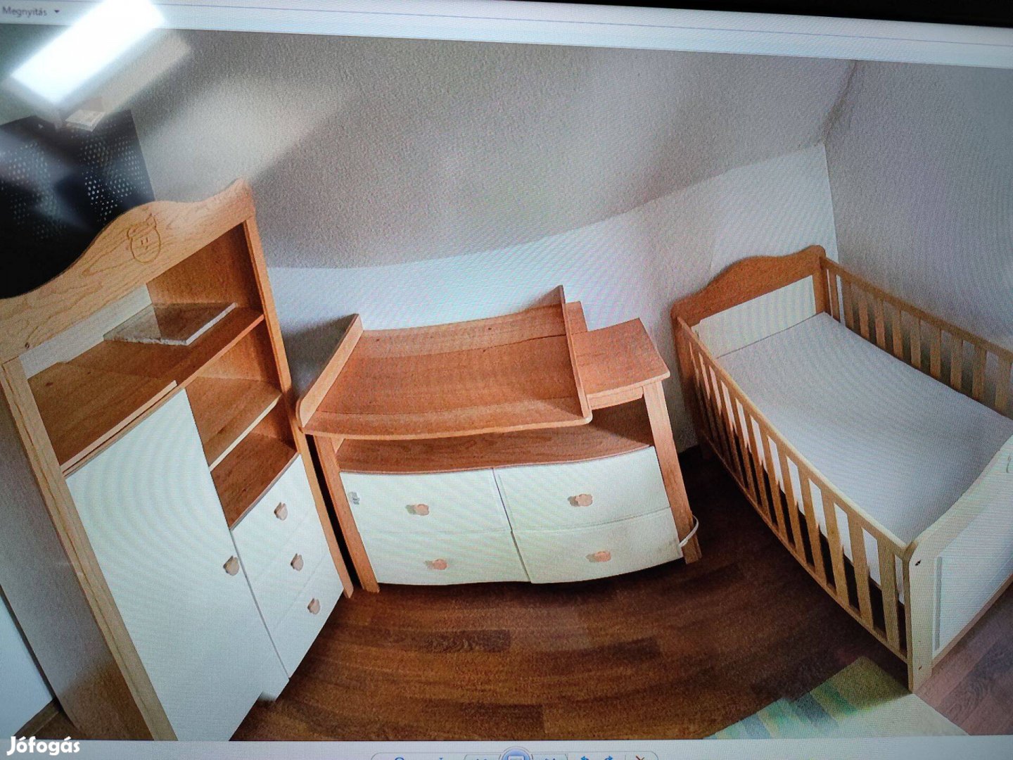 - Gyerekágy (90x140) - átalakítható ággyá (állítható magasság 3 méretre, rács leszedhető, kókuszmatraccal)