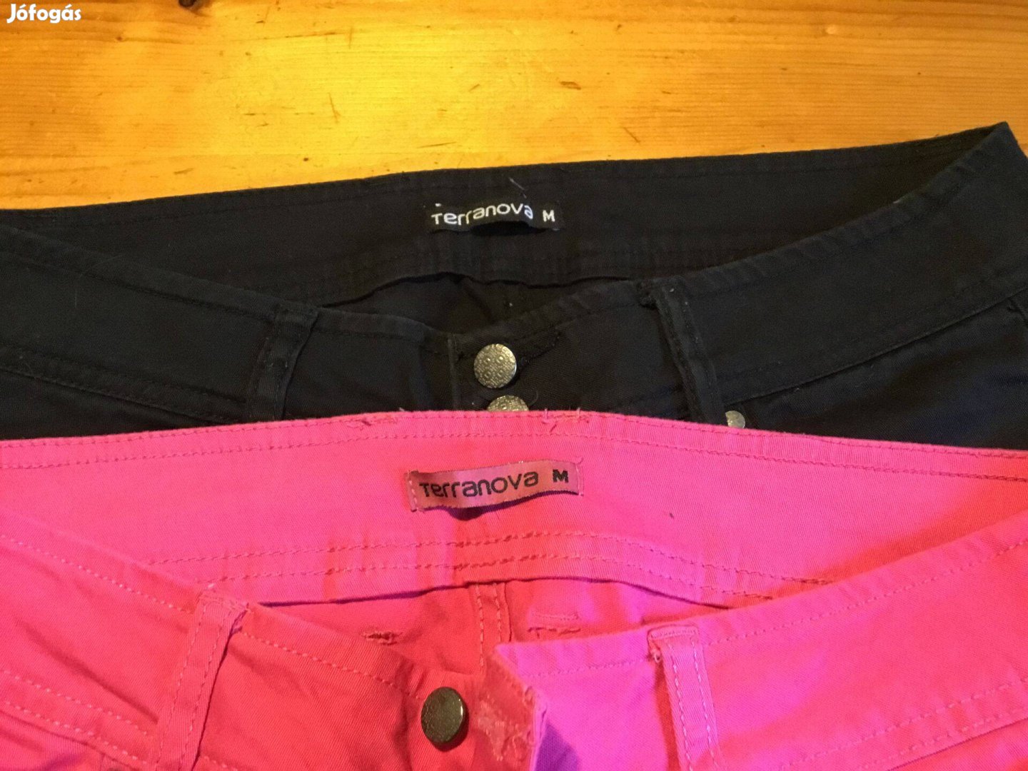 Méretprobléma miatt harmad áron eladó 2 db webáruházból rendelt, M méretű, Terranova márkájú, szűk fazonú, sztreccs anyagú ,egy fekete és egy magenta színű női farmernadrág.