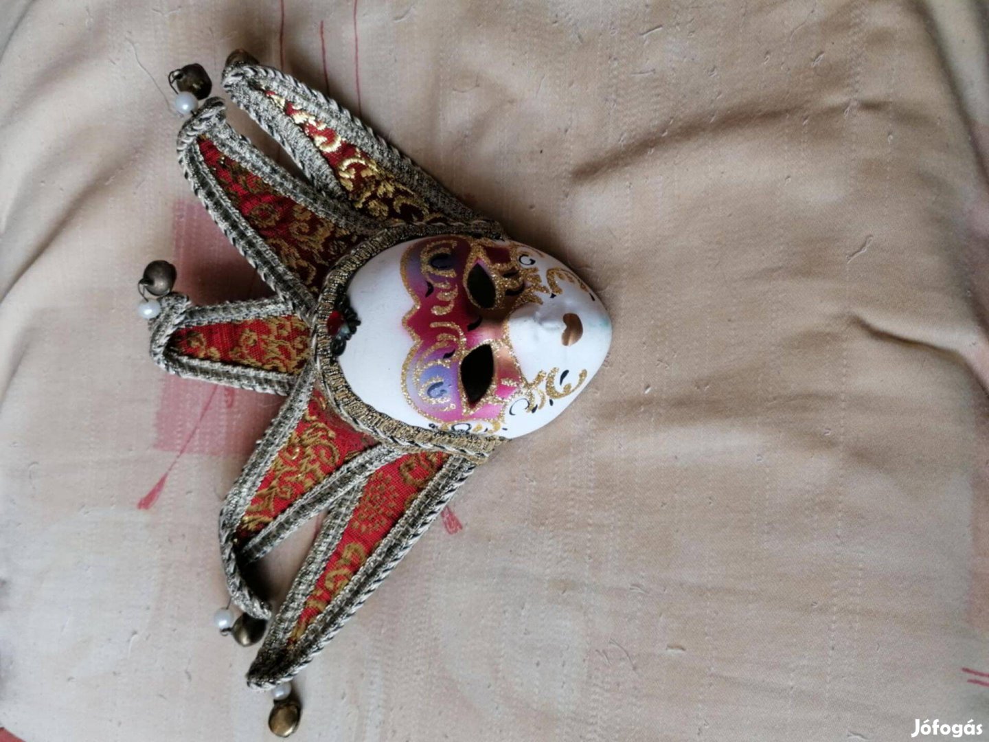 Miskolcon eladó különlegesen bájos, szép női arcú, kézzel festett, porcelán, egyedi velencei farsangi álarc, maszk, falra is akasztható, dísznek is kiváló, feldobja a helyiség hangulatát. 20 x 25 cm. Azonnal elvihető.