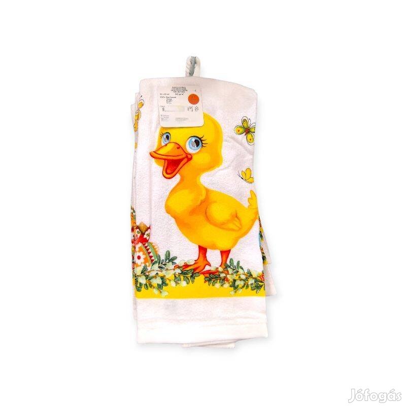 Fehér pamut húsvéti konyharuha sárga kacsával 60x35 cm