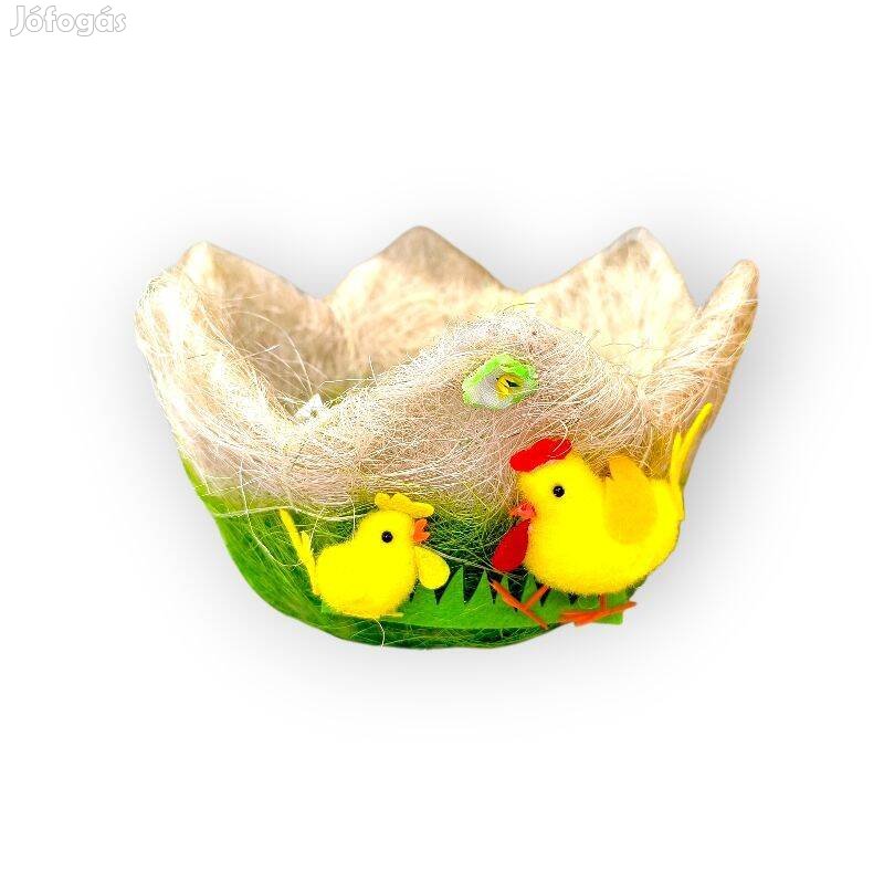 Ez a dekoratív fehér-zöld műfű húsvéti kosár friss, tavaszias megjelenést kölcsönöz a húsvéti dekorációnak. Ideális asztali vagy polcos díszként, önálló dekorációként vagy más húsvéti kiegészítőkkel együtt használva.