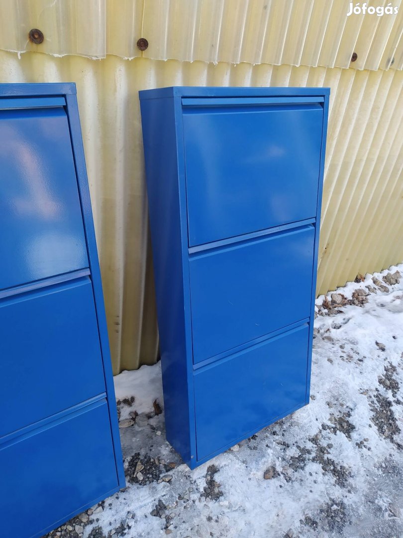 Eladó szép megkímélt állapotban modern fém cipösszekrények , fiókos elosztasal lenyilos ajtóval , amelyek 105 cm magas ,50 cm szélesség ,16 cm mély nagyon erős masszív darab hibátlan szerkezeti és esztétikai állapotban képen minden jól látható Érd telefonon 30/5715106 ,30)3176207 . posta futár megoldható.az ar / db értendő! .