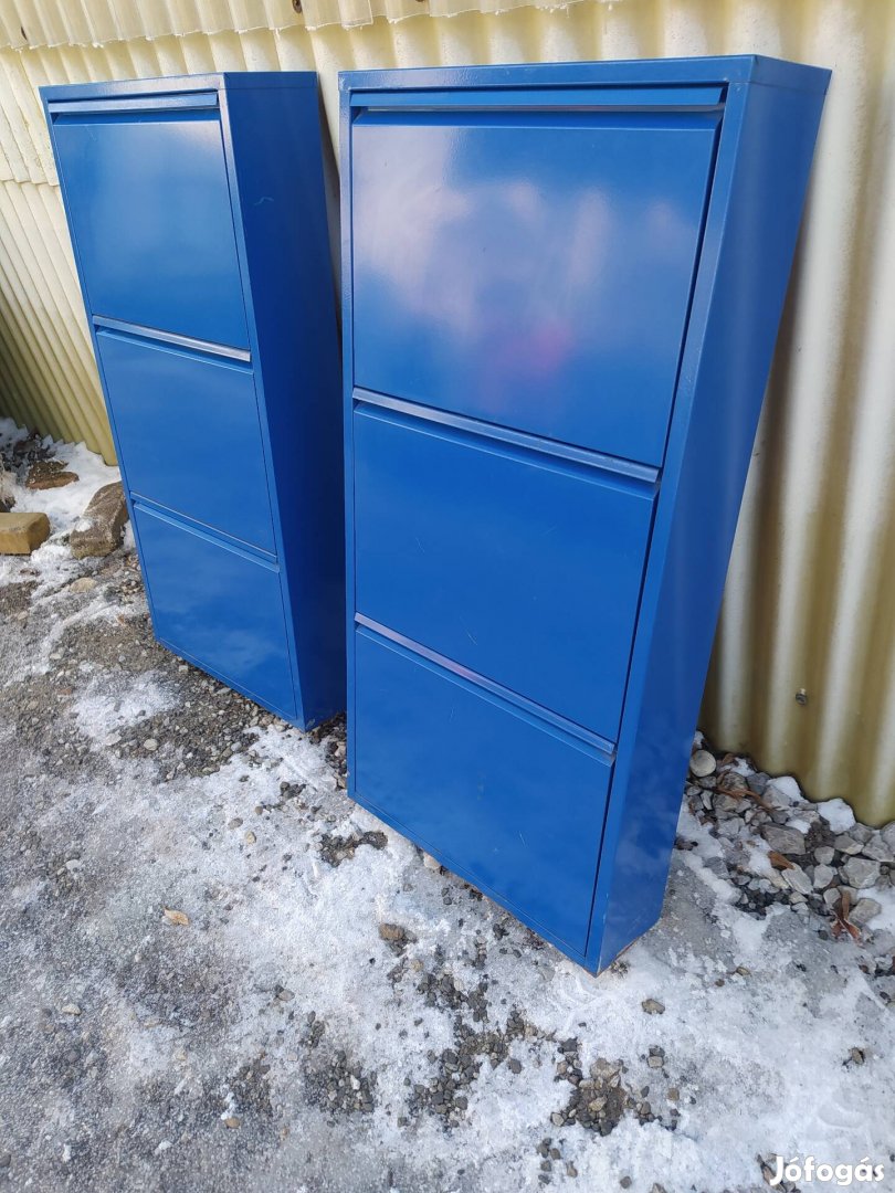 Eladó szép megkímélt állapotban modern fém cipösszekrények/ kék színben ,3 ajtosak , hibatlan szerkezeti és esztétikai állapotban képen minden jól látható Érd telefonon 30/5715106 ,30/3176207 .az ara/ db értendő.Posta futár megoldható.