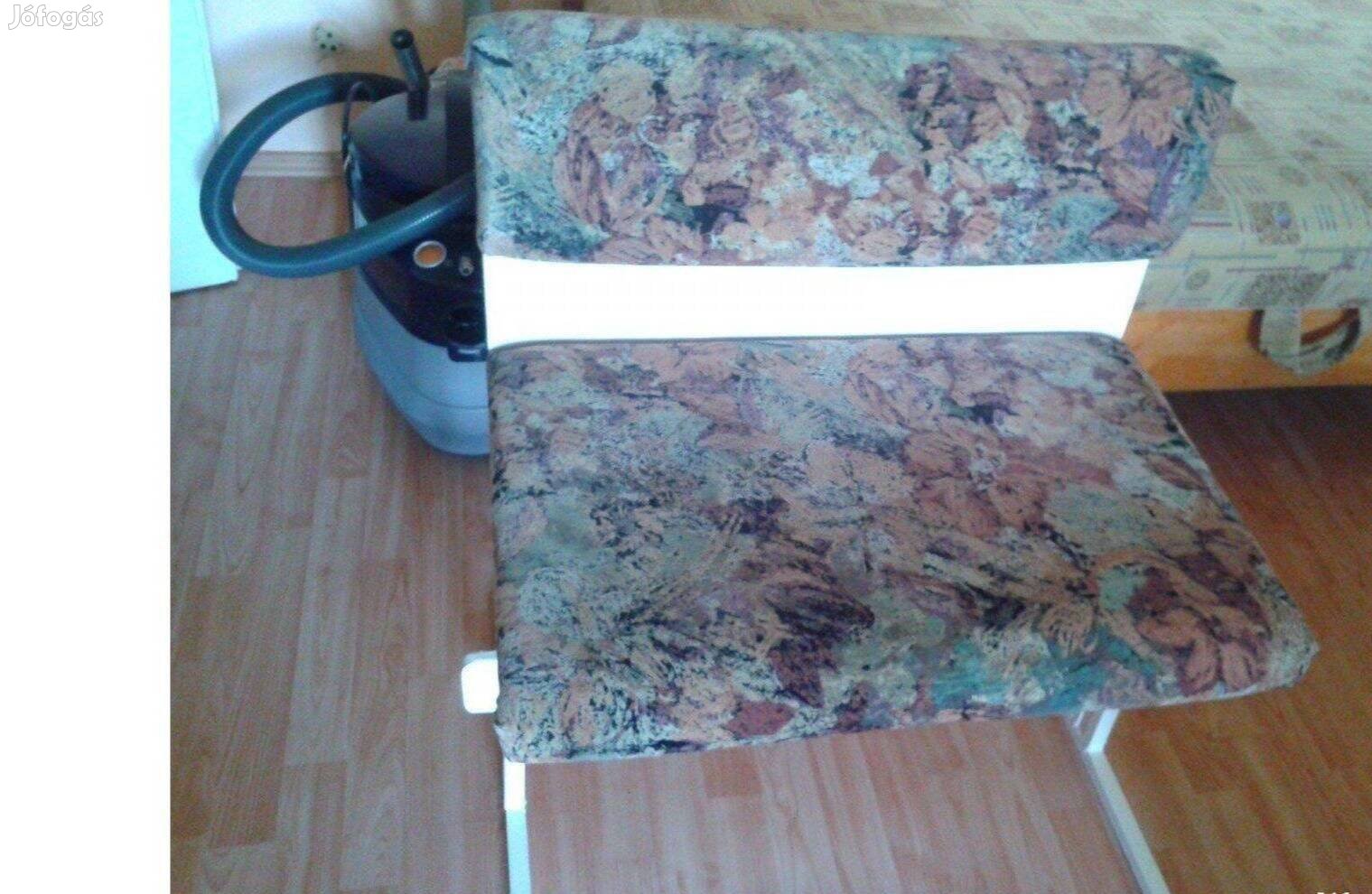 Igény esetén a hosszabb pad része, az összekötő elemmel, valamint két azonos huzatú szék és étkezőasztal kompletten is eladó.