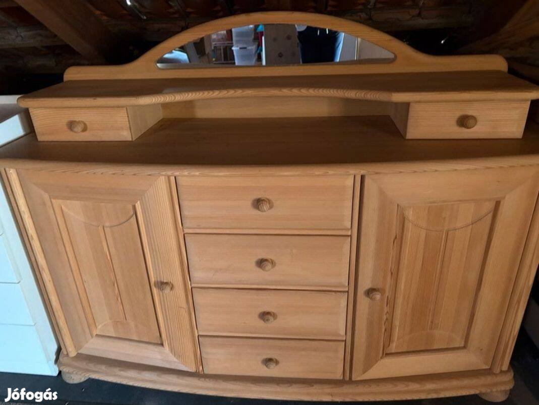 Nagy méretü tükrös fenyö komód szép állapotban eladó. Hossza:156cm, Magassága:120cm, Szélessége:50cm.