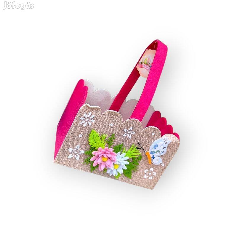 Ez a filc húsvéti kosár virágmintákkal díszített, tökéletes tavaszi és húsvéti dekoráció asztalra, polcra vagy ablakpárkányra. Könnyű és stílusos kiegészítő, amely vidám hangulatot teremt a húsvéti időszakban.