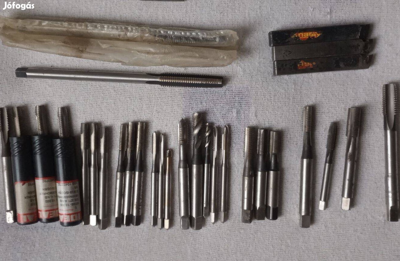 Eladó a lépen láthatóm8-m10-m10×1-m12-m12×1-es gépi menetfúrók Újak és használtak.+ 3 kicsi esztergakés együtt.