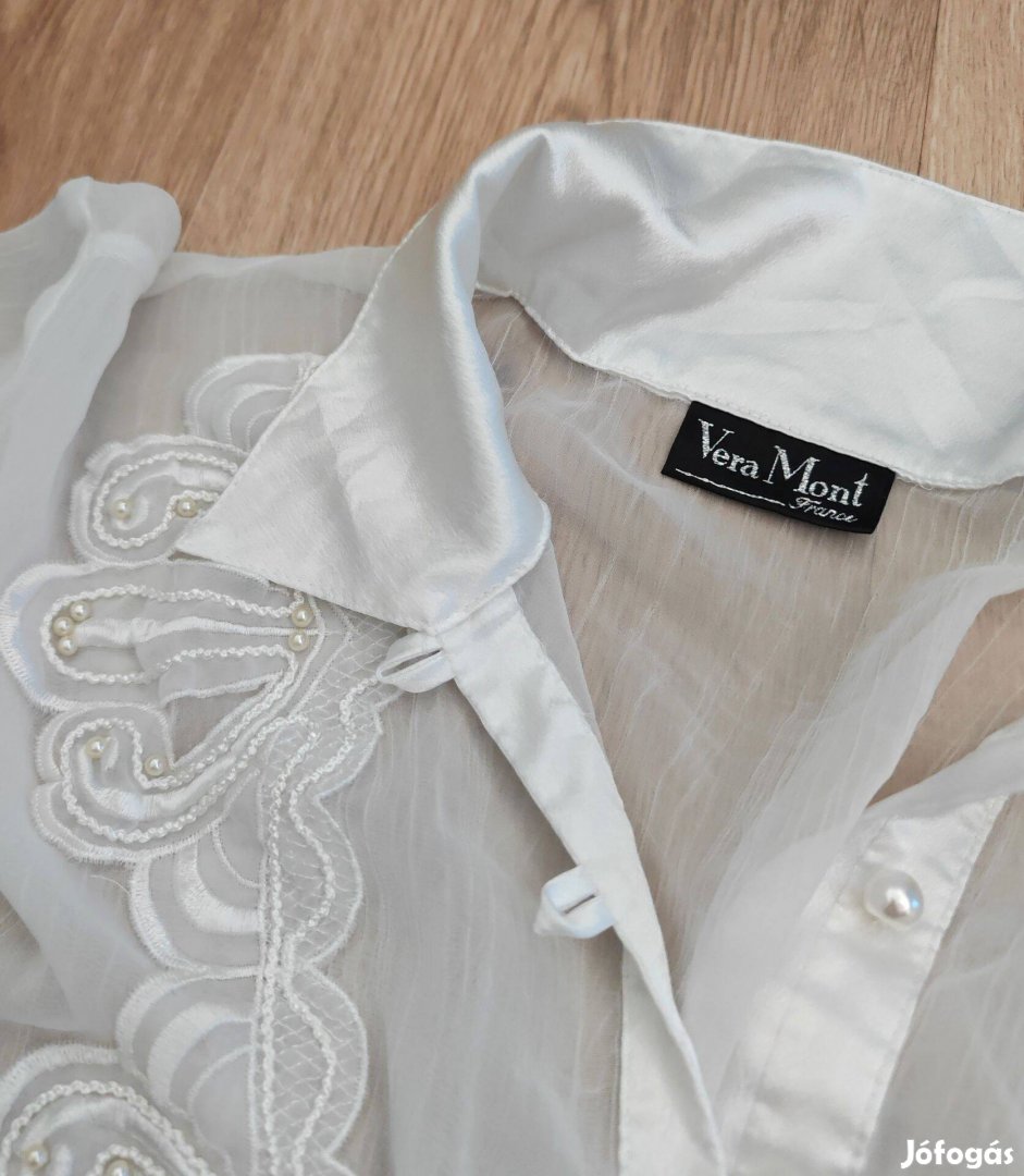 Gyöngyös fehér női tunika blúz XL