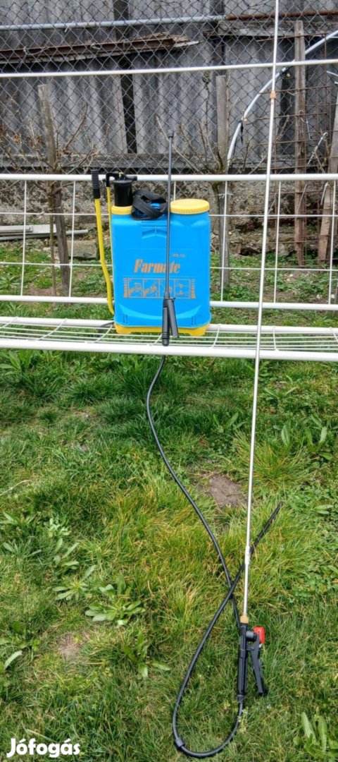 Eladó 16 l-es használt háti permetező, megkímélt állapotban. Tarozéka egy gyümölcsfák permetezéséhez használt kb 2,5 m-es toldó.