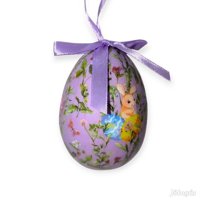 Húsvéti tojás dekoráció lila, nyuszis virágmintával, 10 cm