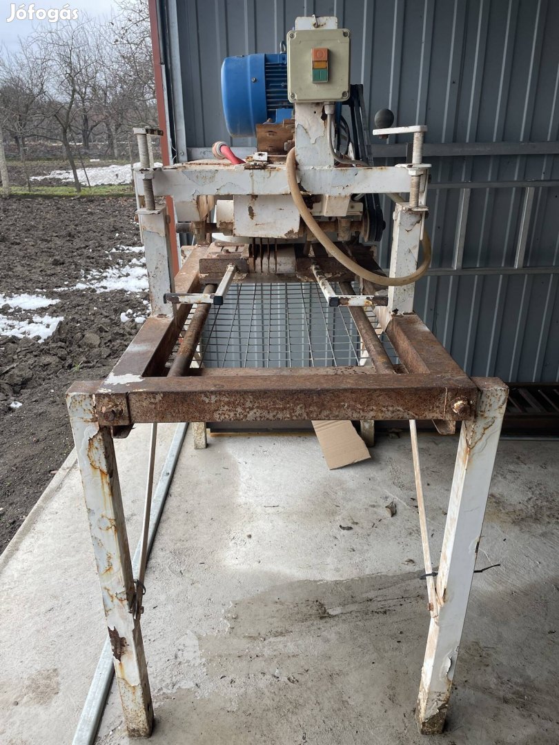 Eladó a képeken látható ipari vizes vágó/szeletelő gép. Villanymotor adatai a képen. Rendeltetésszerűen működik rajta minden, a vízbevezetés is!