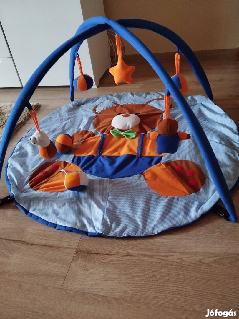 A baba játszószőnyeg eredeti csomagolásában van, egyszer volt használva. Különböző játékok és funkciók találhatók rajta, amik fejlesztik a baba érzékelését, mozgáskoordinációját.