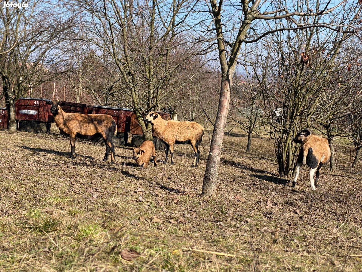 Kameruni juh család, 1 éves, kettő jerke egy kos és egy hónapos kos bárány.