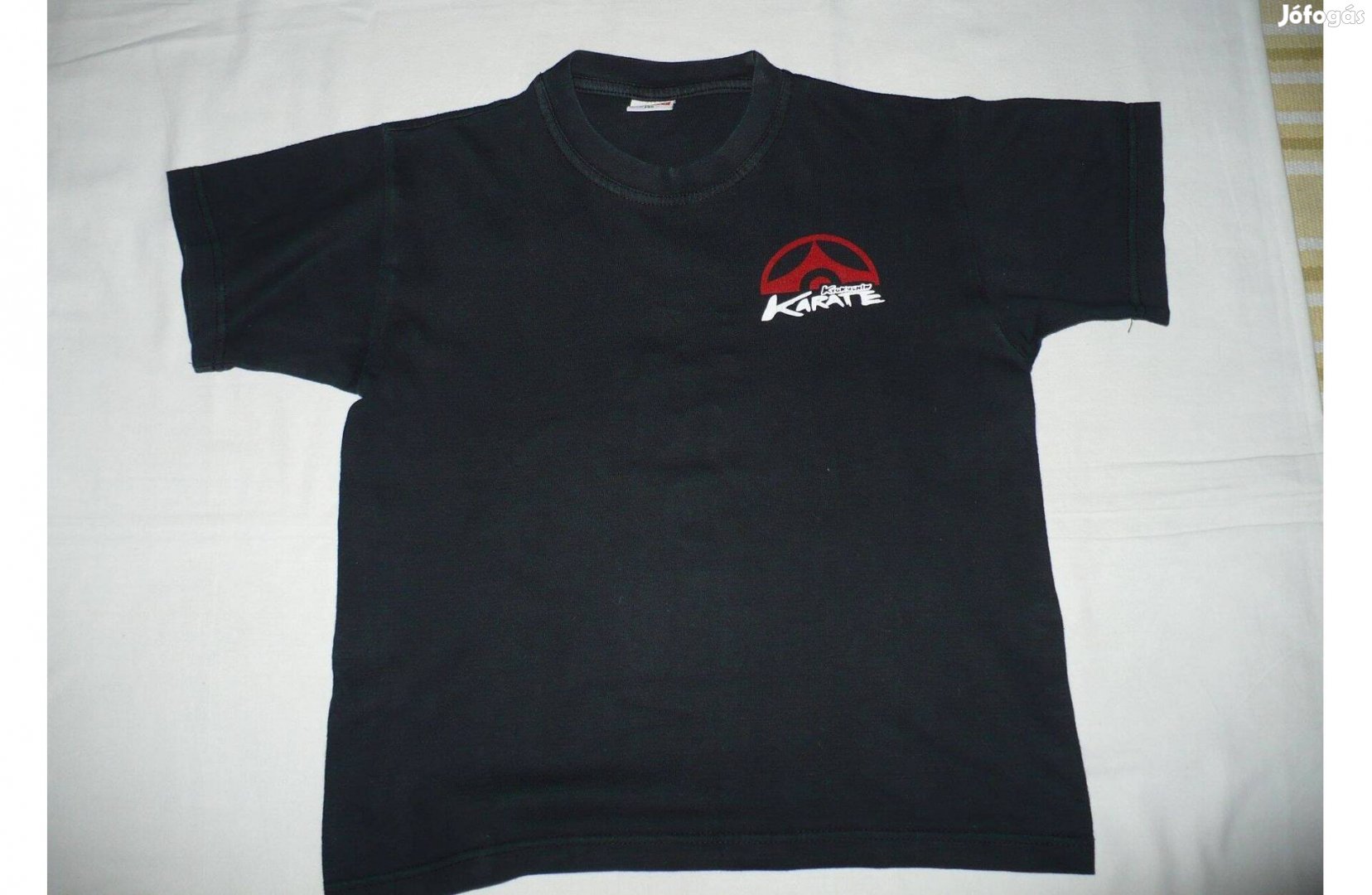 Kyokushin karate póló, fekete, 146-os méretben, jó állapotú. A póló teljes hossza 51 cm, hónaljnál mért szélesség 44-45 cm.
