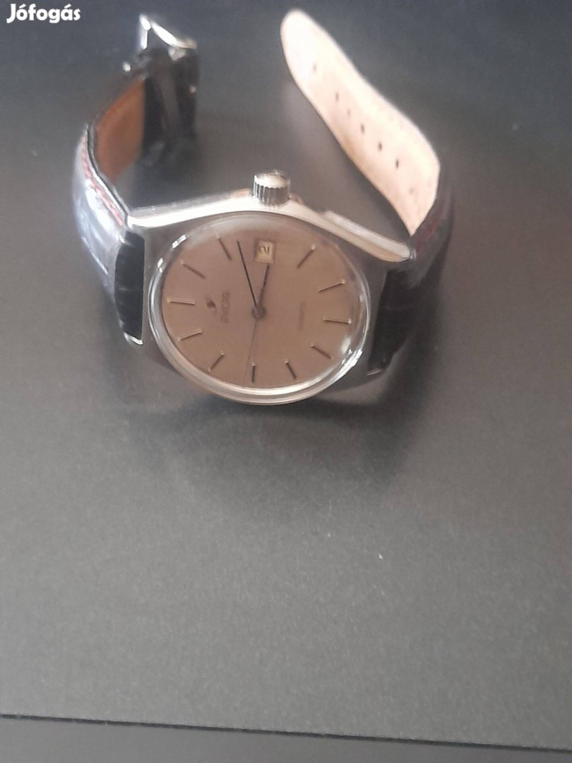 Elado, a kepeken lathato, Enikar, Svajci ora. Hibatlan, szep alapotban. Tok atmero-38+korona. Datum ablak3-nal. Minosegi borszij.