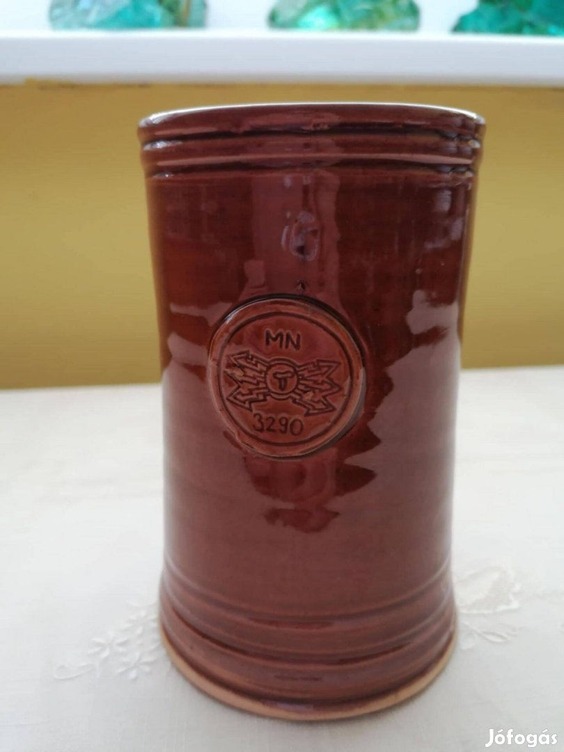 Miskolcon eladó új kinézetű, de több évtizedes, legalább 40 éves, kifogástalan, Magyar Néphadsereg jelzésű katonai barna színű kerámia korsó, kupa