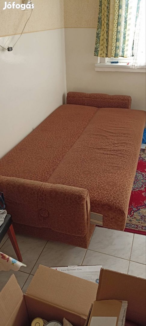 Szerencsen barna színű kattanós kanapé eladó. Kinyitva 112 cm széles és 219 cm hosszú