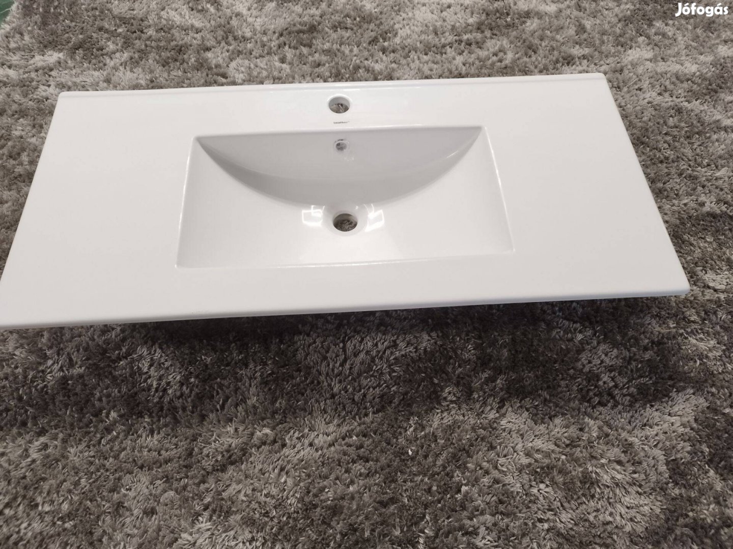 Eladó egy vadonatúj magas fehér fényű kerámia mosdó, lapos kivitel mély medencével, csak a kép készítése miatt lett felbontva.
