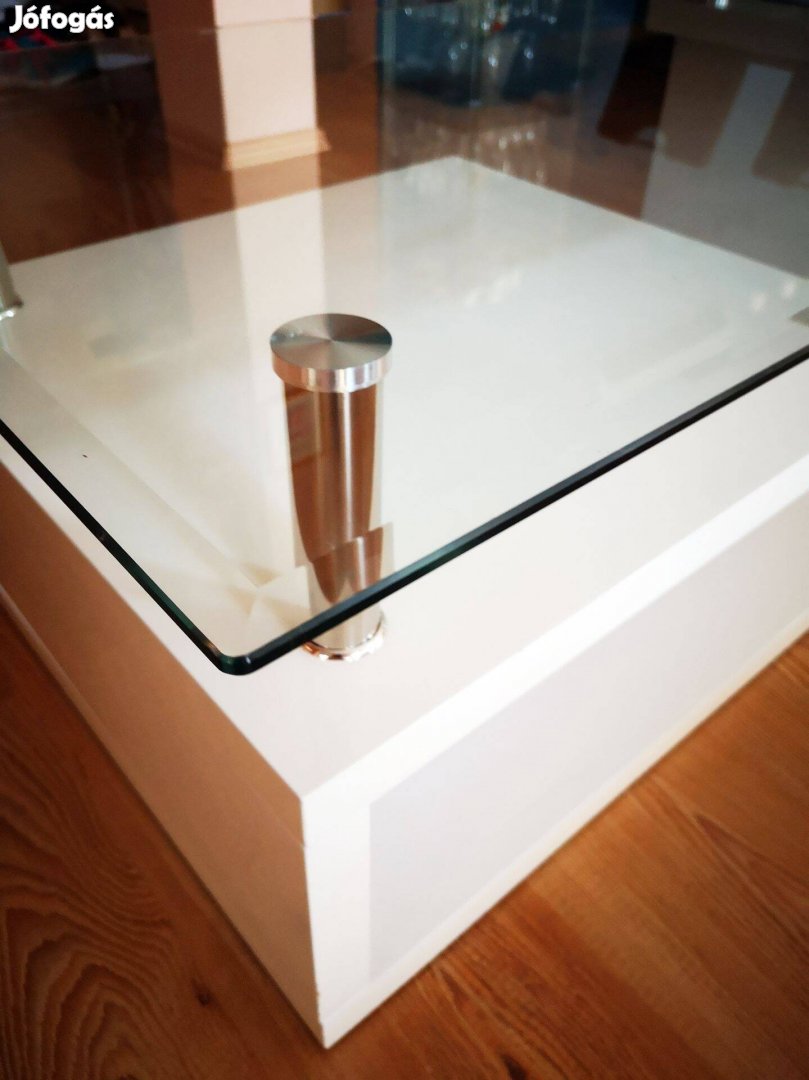 Költözés miatt sürgősen eladó magasfényű fehér kisasztal, dohányzóasztal.
