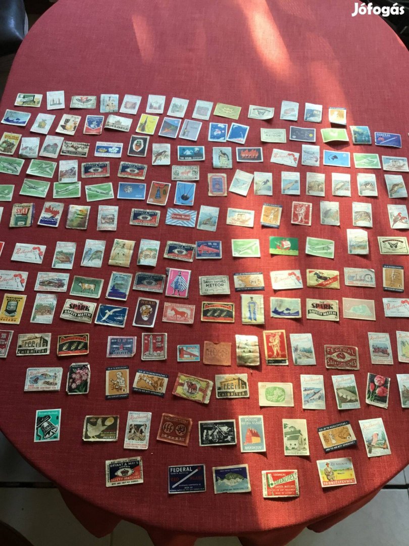 Egyben eladó egy hagyatékból fellelt, 130 -140 darabból álló külföldi gyufacimke gyűjtemény. A cimkék zöme családi kapcsolatok miatt Ausztráliából való, de van néhány kínai, szovjet, arab, csehszlovák darab is és egy -egy madagaszkári, szenegáli, szudáni gyufacimke is.