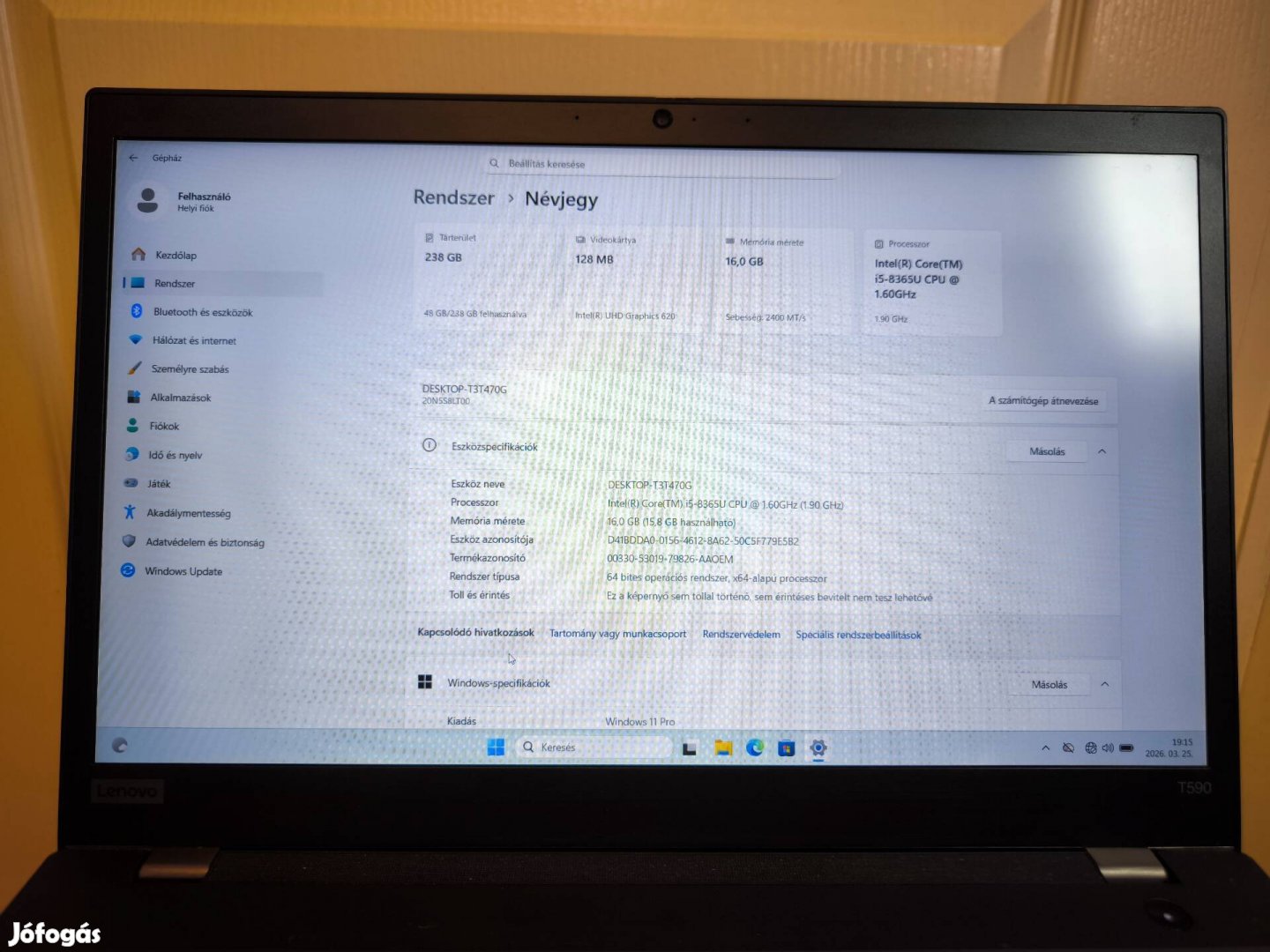 Eladó Lenovo Thinkpad T590 jó akksival amellyel 4-5 órat bír (felhasználástól függően)