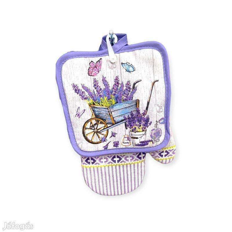 Lila levendulás szekér edényfogó kesztyű szalvétával 2 db-os