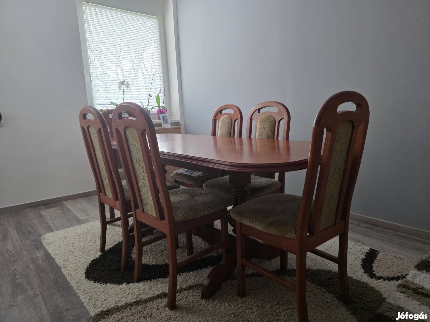 Masszív fa étkezőasztal 6 székkel - bővíthető, jó állapotban