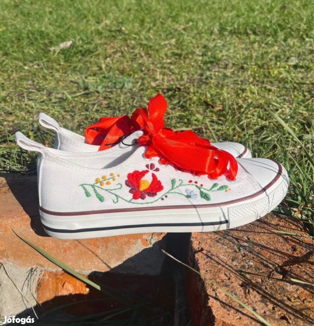 Kézzel hímzett sportcipő, akár menyecske ruhához, akár hétköznapra.