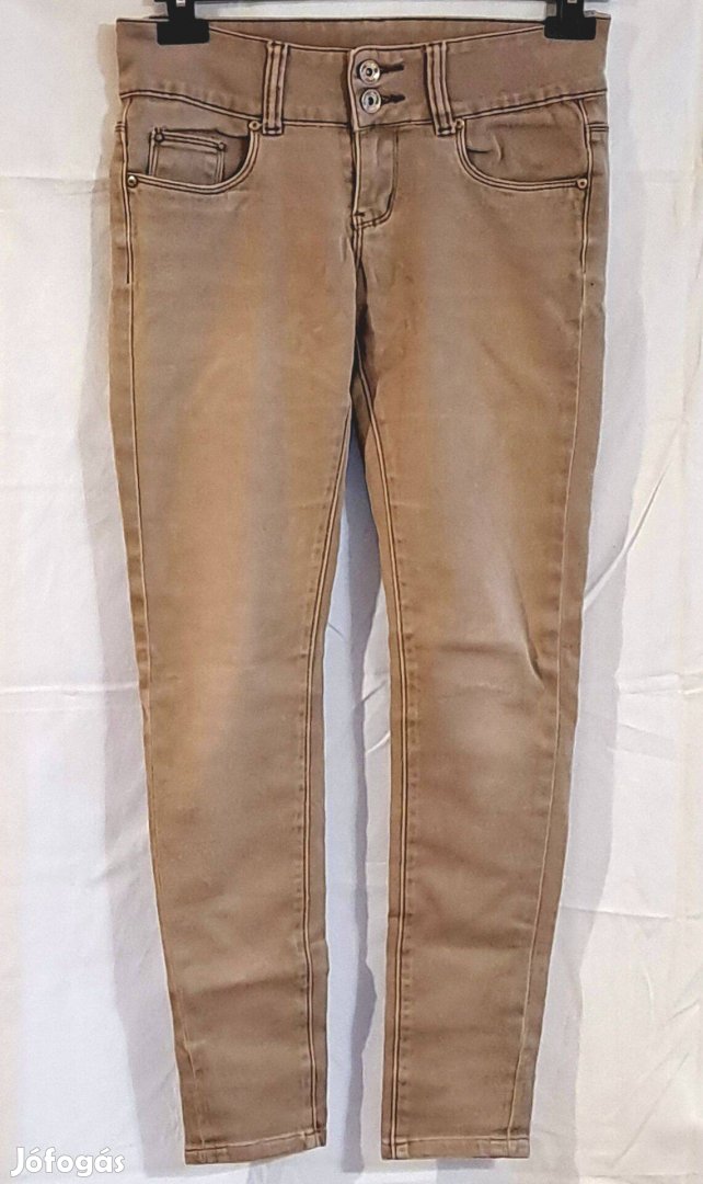 Egy kiváló állapotú, barna színű Mini Bleu női nadrág. A 95% pamut és 5% elasztán összetételnek köszönhetően rendkívül kényelmes, rugalmas és formatartó darab. Különlegessége a dupla gombos záródás és az egyedi díszítésű, dekoratív gombok.Világosbarna / tejeskávé színű, 30 fokon mosható, kímélő vasalást igényel. A fotók a ruháról készültek, igyekeztem olyan fotókat csinálni a kritikus helyekről, melyek bizonyítják a szakadás, de főleg a kopásmentességet. Hibátlan, foltmentes. Átvétel személyesen ( Miskolc-Kazincbarcika ) vagy csomagküldés megoldható a vevő terhére és felelősségére előre utalás után. A szállítás közben történt károkért felelősséget nem áll módomban vállalni, bár ilyen még nem fordult elő a csomagolásom miatt. Utánvét nem lehetséges. Kérem, hogy tekintse meg a többi eladó termékemet is. Vásárolj 2 db ruhát: 15% kedvezmény; 3 db: 25% kedvezmény, míg 5 vagy több db 40% kedvezmény.