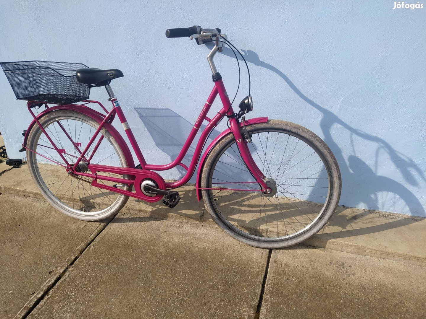 Eladó szép igazi / Csajos nöi kerékpár/amely 28- As kerekü , agydinamos ,3 sebeséges agyvaltos / markolat valtos / és kontrafékes,jól felszerelt vilagiasal sarvédövel csomagtartoval,kosaral elatott hibátlan szerkezeti és esztétikai állapotban képen minden jól látható Érd telefonon 30/5715106 ,30)3176207 ..
