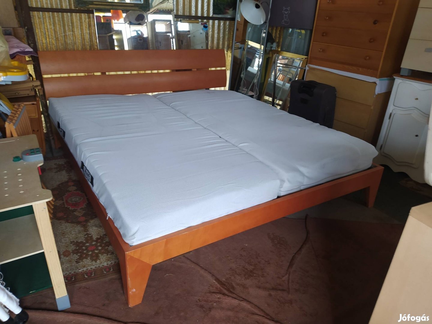 Eladó szép újszerű állapotú modern bükkfa franciaagy amely 180+200-as méretű allitho agyracsal / fejvég magasaga ,derékkeménysége / tiszta minöségi Ikeas matracal / matrac külseje lehúzható mosható/ nagyon erős masszív darab ,ez nem Jyskes bútor , hibátlan szerkezeti és esztétikai állapotban képen minden jól látható Érd telefonon 30 5715106 ,30/3176207 .lapra szerelhető .