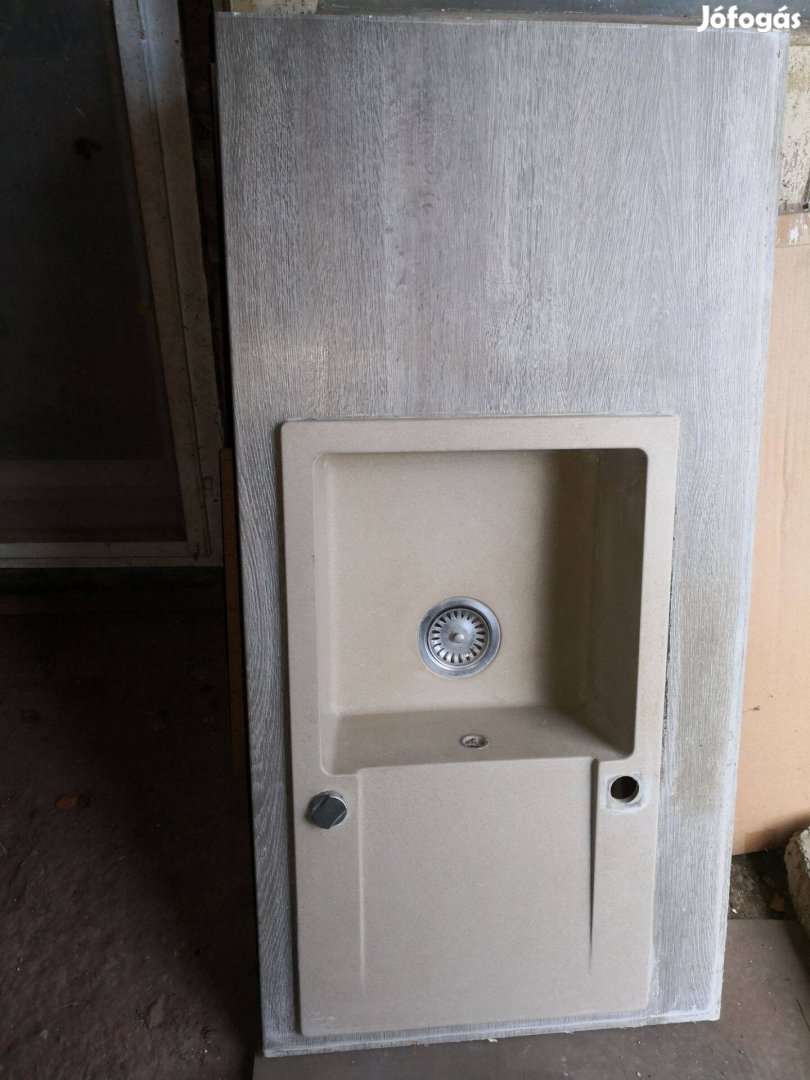 Eladó a fotókon látható kerámia mosogatótálca munkalappal együtt, csaptelep nálkül. Használt, sérülésmentes állapotú, 120x60 cm-es munkalapba beépítve, a mosogatórész 37,5x37,5 cm és 15,5 cm mély, cspptálcával együtt 77 x45 cm. Miskolcon megtekinthető, átvehető.