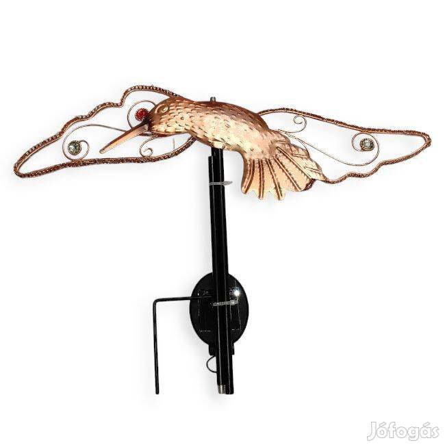Napelemes madárfigurás fém lámpa színes kristályokkal és fonott LED-