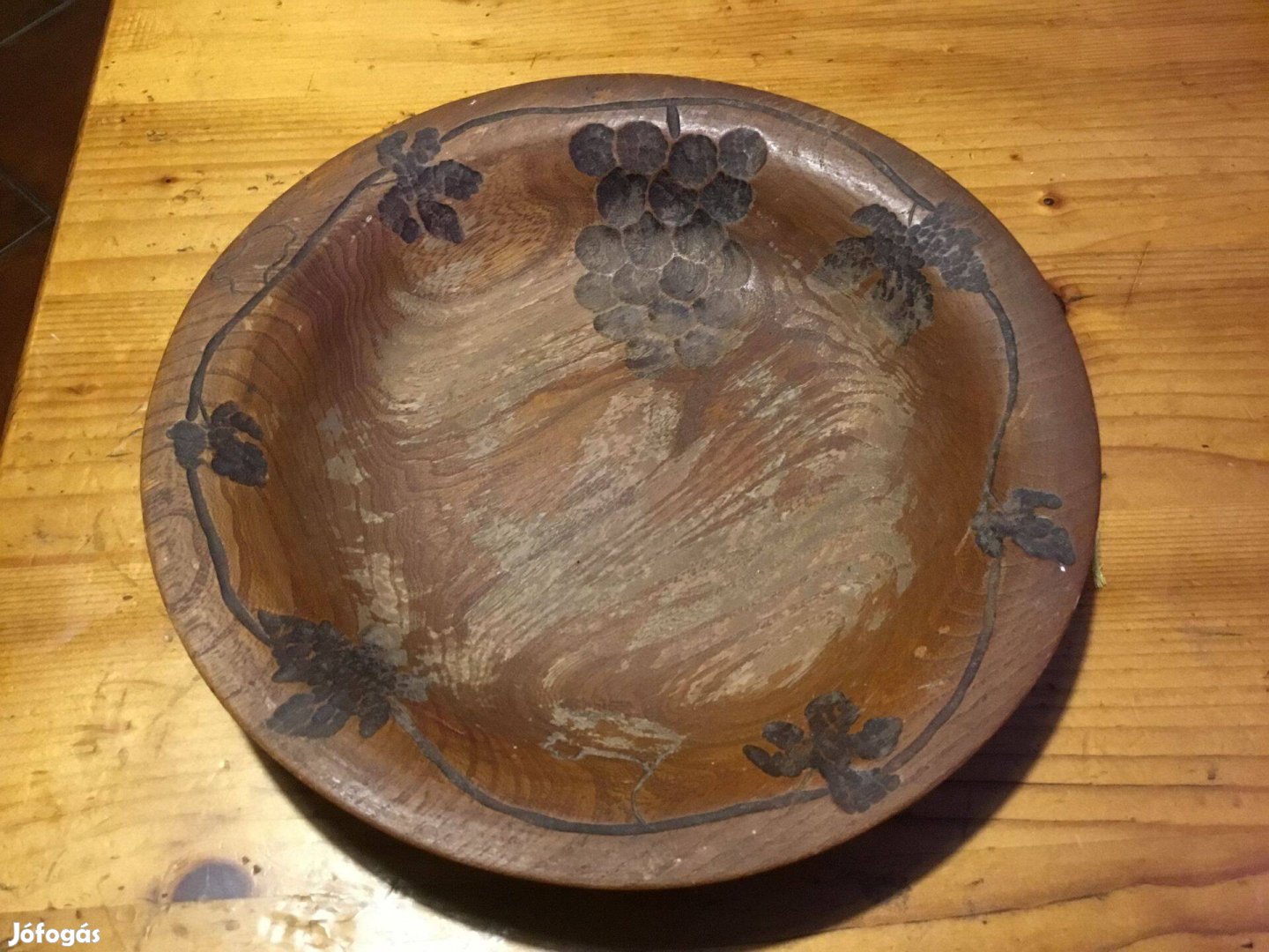 Népi fatányér, égetett mintával , hagyatékból, fellelt állapotban