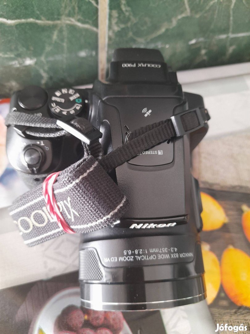 Eladó Nikon Coolpix P900 gépem.83x-os zoom.Zoomvezérlő és visszaállító gomb.Full Hd videó, sztereó hangfelvétel.Időzített videó felvétel.Manuális expozíciós módok.Forgatható LCD kijelző Lítium-Ion akkumlátor Sérülés mentes . Új sd kártyával Csak személyes átvétellel
