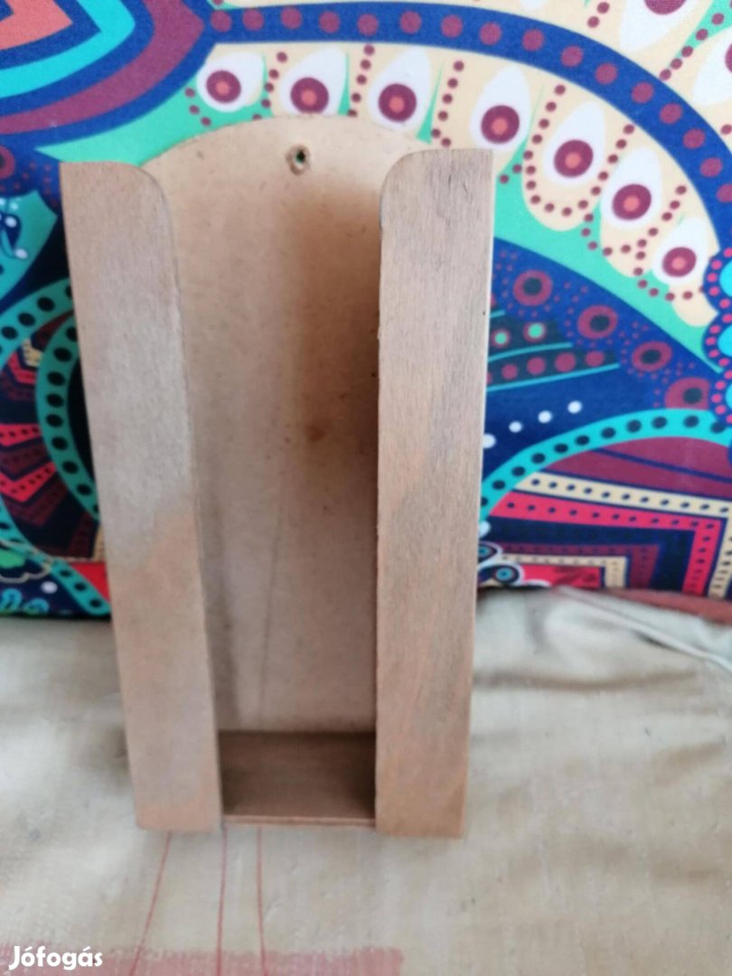 Miskolcon eladó egy még nem használt natúr falemez papírzsebkendő tartó, falra akasztható, vagy állva, vagy fekve használható. Magassága 23 cm. Azonnal elvihető.