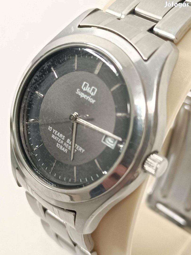 Eladó Q&Q Superior férfi acél kvarc óra, fekete számlappal, dátum kijelzéssel.