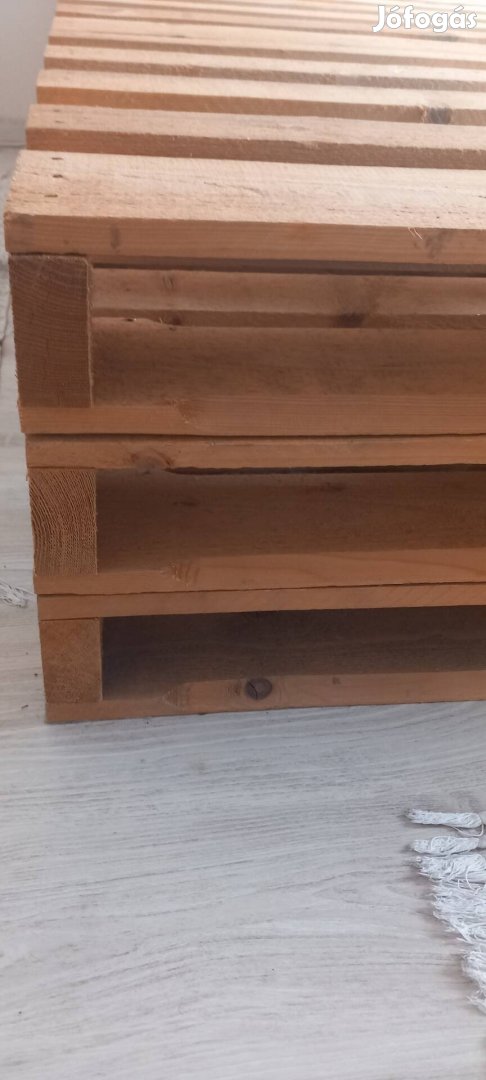Eladó raklapágy, újszerű, erős, duplatalpas. Szétszerelhető és alakítható. Ágy méret 200x204 cm. Összesen 12 darab, 6 darab egész 100x120 cm-es, és 6 darab 100x78 cm-es. Van még plusz egy 100x120 cm-es raklap.