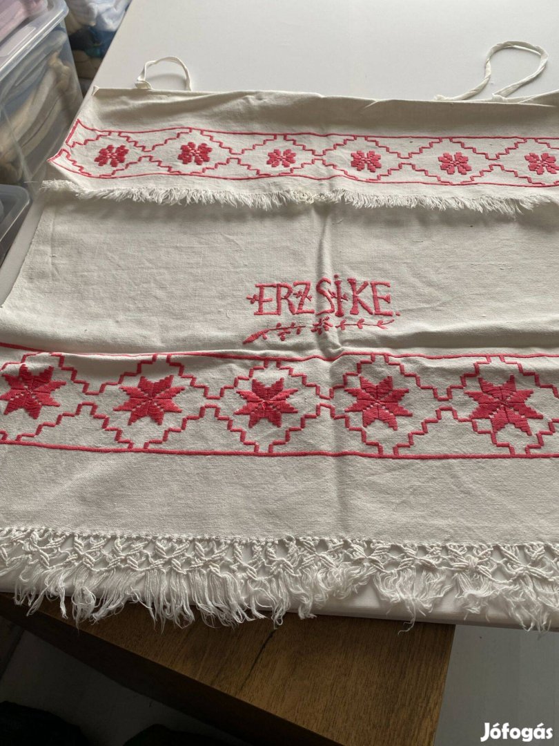 Régi kézzel hímzett Erzsike felíratú surc, kötény