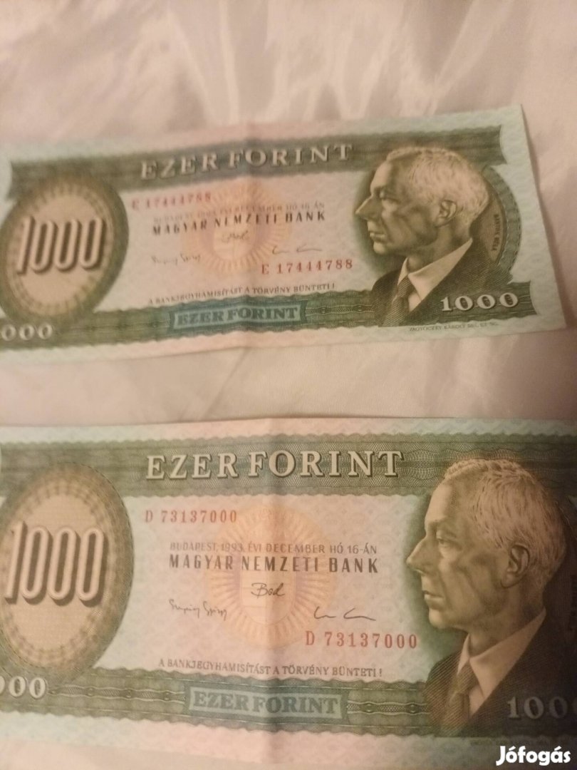 A képen kátható állapozban eladó a fent említett címletű ezer forintos bankjegy